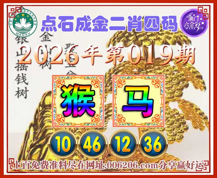 019期:《点石成金》  ♣️二肖四码 ♣️【马】【10.46.12.36】开:猴46准公开见证