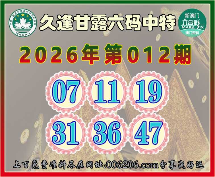 012期:【久逢甘露】 🚵‍♀️六码中特🚵‍♀️【07.11.19.31.36.47】开:11准公开见证