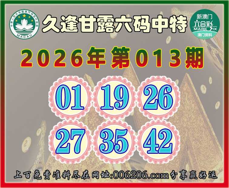 013期:【久逢甘露】 🚵‍♀️六码中特🚵‍♀️【01.19.26.27.35.42】开:01准公开见证