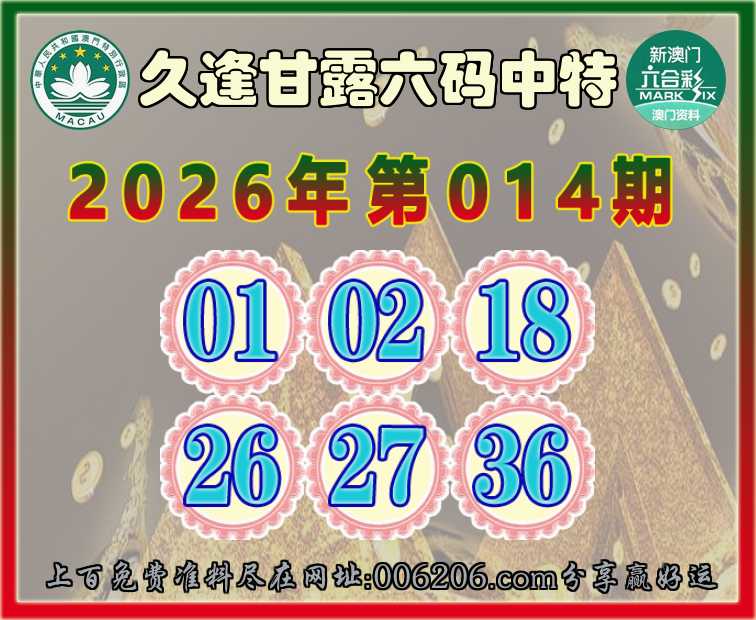 014期:【久逢甘露】 🚵‍♀️六码中特🚵‍♀️【01.02.18.26.27.36】开:26准公开见证