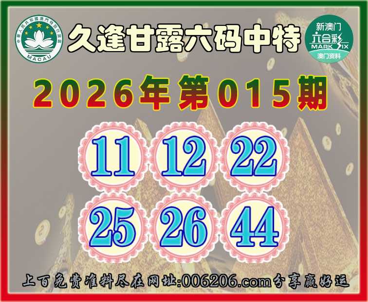 015期:【久逢甘露】 🚵‍♀️六码中特🚵‍♀️【11.12.22.25.26.44】开:31