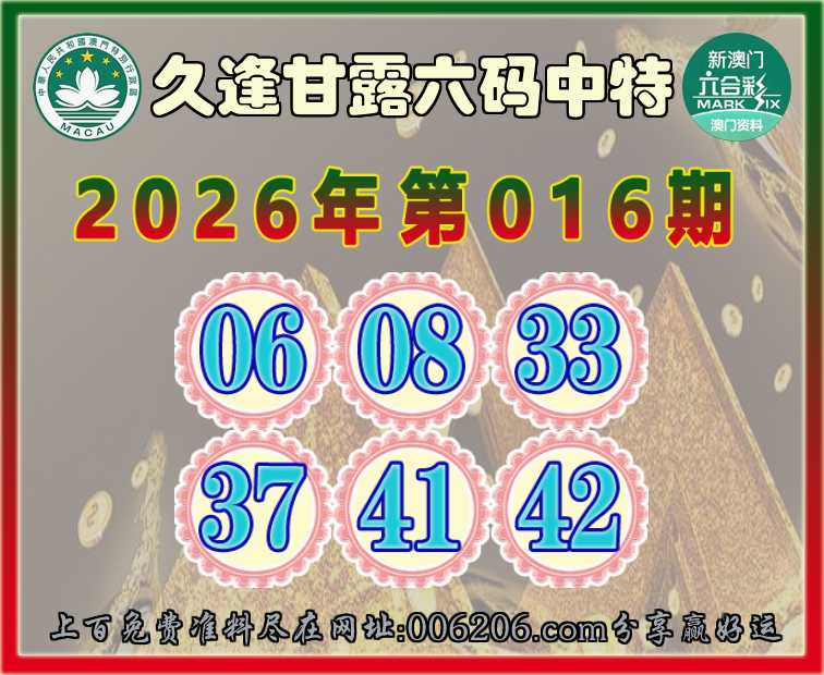 016期:【久逢甘露】 🚵‍♀️六码中特🚵‍♀️【06.08.33.37.41.42】开:06准公开见证