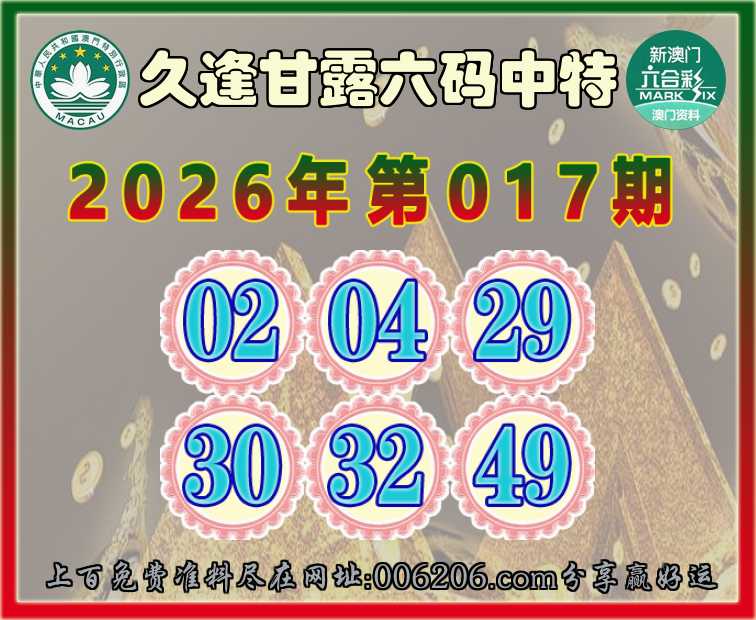 017期:【久逢甘露】 🚵‍♀️六码中特🚵‍♀️【02.04.29.30.32.49】开:32准公开见证