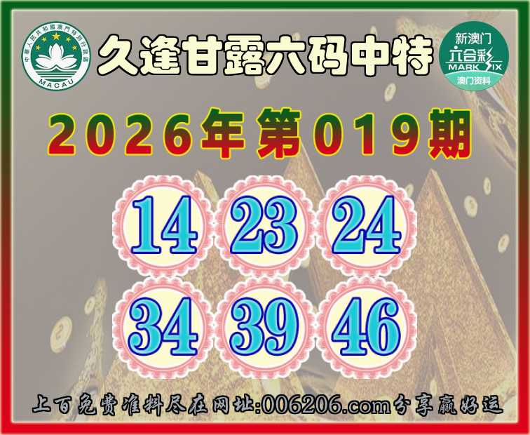 019期:【久逢甘露】 🚵‍♀️六码中特🚵‍♀️【14.23.24.34.39.46】开:46准公开见证