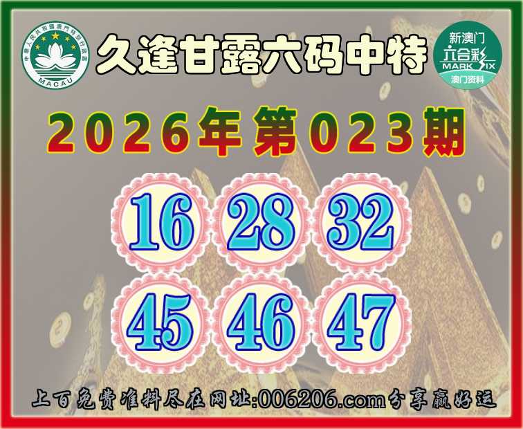 023期:【久逢甘露】 🚵‍♀️六码中特🚵‍♀️【16.28.32.45.46.47】开:47准公开见证