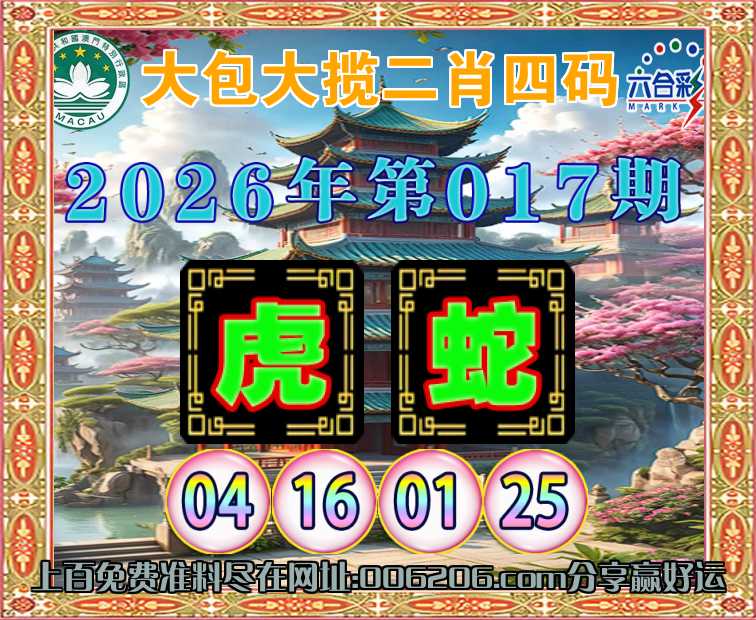 017期:〖大包大揽〗 🍖二肖四码🍖【虎蛇】【04.16.01.25】开:狗32