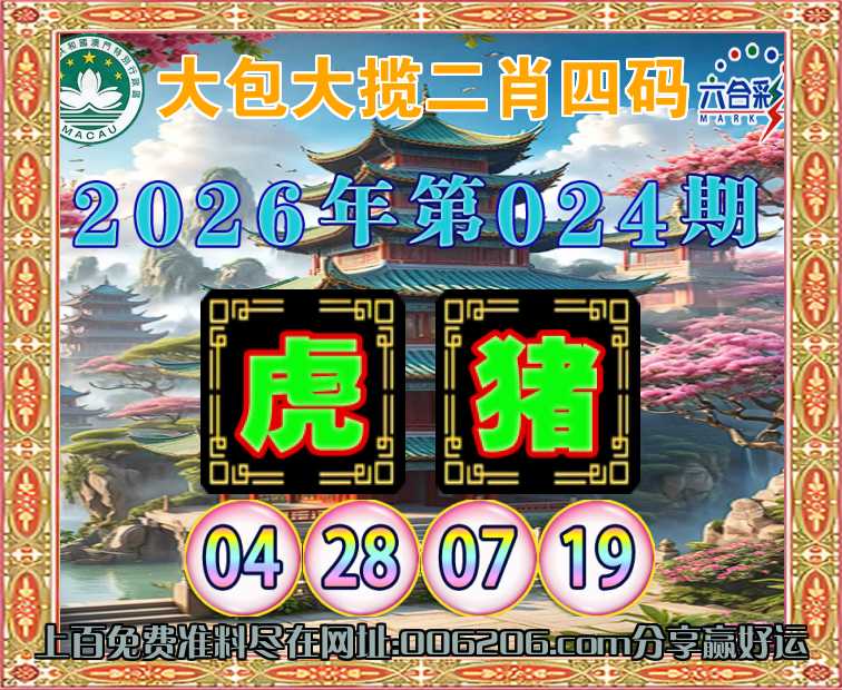 024期:〖大包大揽〗 🍖二肖四码🍖【猪】【04.28.07.19】开:虎28准公开见证