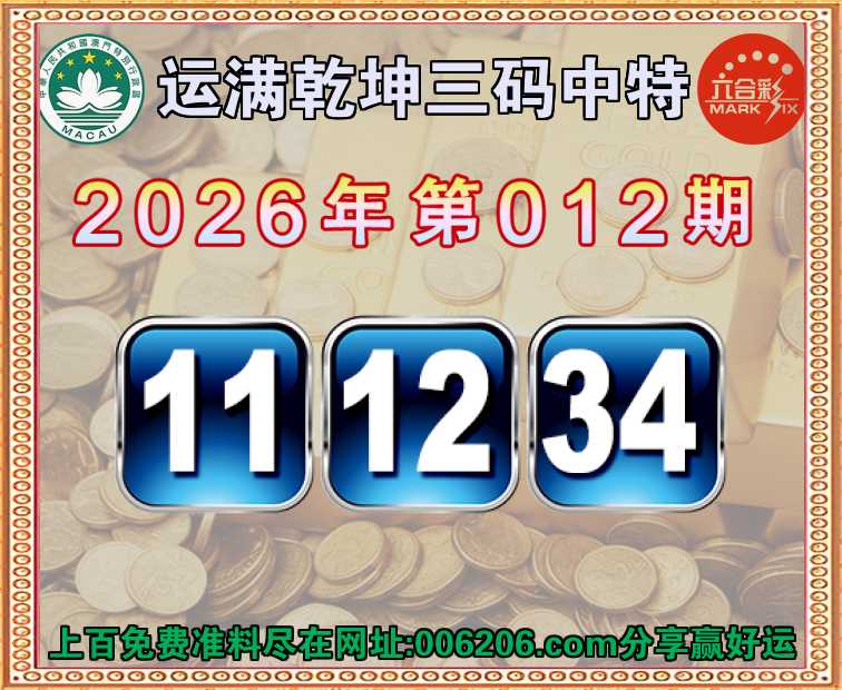 012期:【运满乾坤】 👛三码中特👛【11.12.34】开:11准公开见证