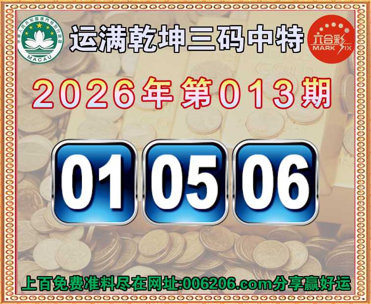 013期:【运满乾坤】 👛三码中特👛【01.05.06】开:01准公开见证